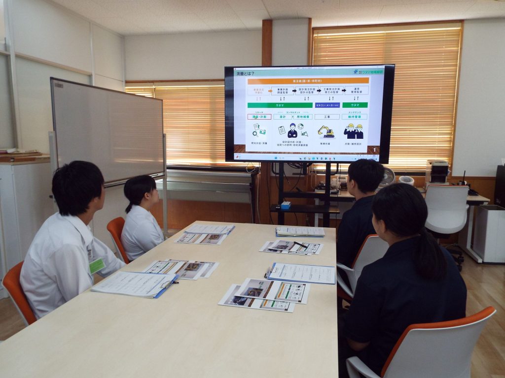 当日は建設コンサルタント業について、設計・測量・点検業務の仕事内容について説明をしました。